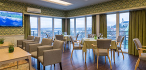 Trečiame pastato aukšte įsikūręs atsinaujinęs „Sinchronas“ restoranas laukia ne tik viešbučio svečių, bet ir miesto gyventojų. Atvykę pas mus taip pat rasite konferencijų/pobūvių salę su visa reikalinga įranga, o norintiems atpalaiduojančio poilsio siūlome apsilankyti turkiškoje saunoje bei sūkurinėje vonioje.